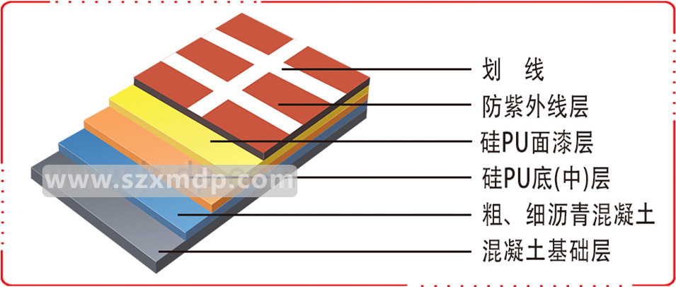 ![]() 又稱亞力克地板,亞克力球場地板,彈性地板,丙烯酸地板, 運動地板,球場地坪,網球場地板,籃球場地板,排球場地板,羽毛球場地板等。 ![]() 網球場、籃球場、排球場、羽毛球場。 ![]() 色彩鮮艷、耐磨性好、保養容易、全天候使用、優異的抗紫外線性能。 | ![]() 基 層:混凝土基層須設計防潮層或瀝青混凝土; 試 水:試水,在低洼處作標記; 底 層:涂刷亞克力底層; 找 平 層:在低洼處作找平層; 中 涂 層:刮涂亞克力中涂層 2--3 次; 面 涂 層:刮涂亞克力面涂層 2--3 次; 劃 線:按標準用白色亞克力劃線; 地坪厚度:約 1--1.5mm。 |